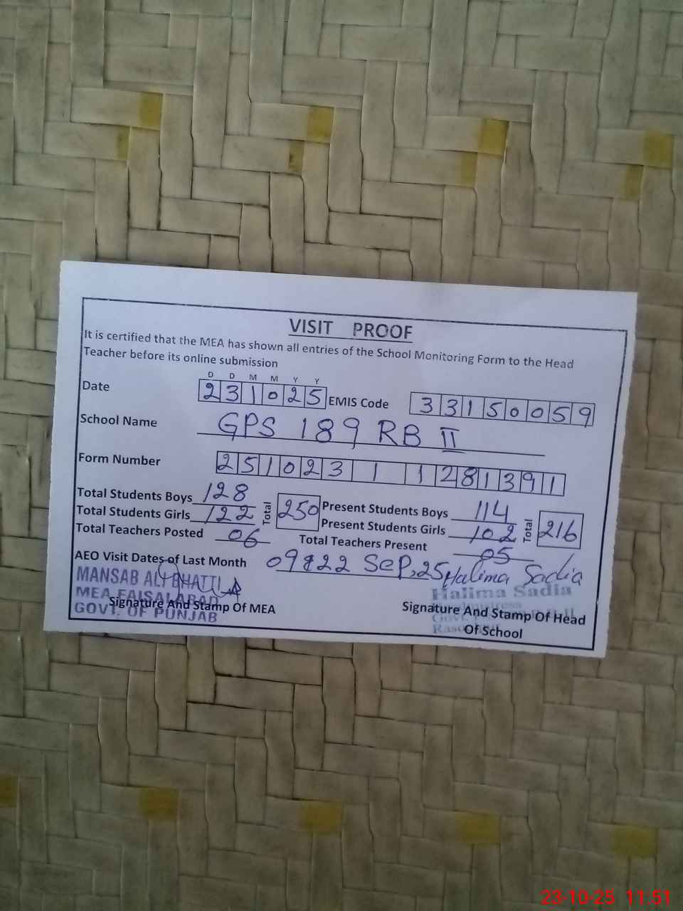 | EMIS Code: 33150059 | Name of School: GPS 189 RB II RASOOLPUR | |||
