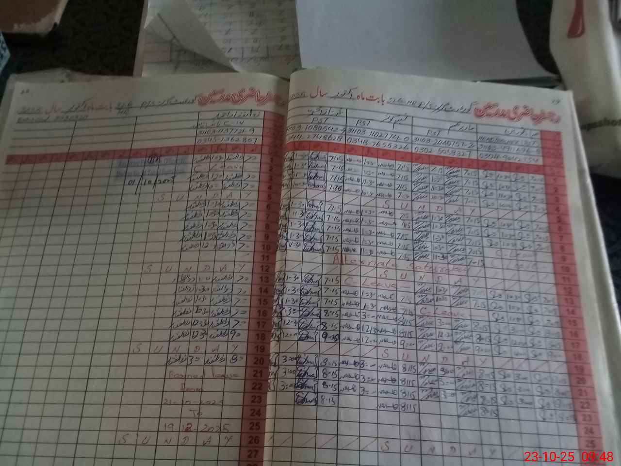 | CNIC | Full Name | Designation | R/C | Absence During Last Calender Month |