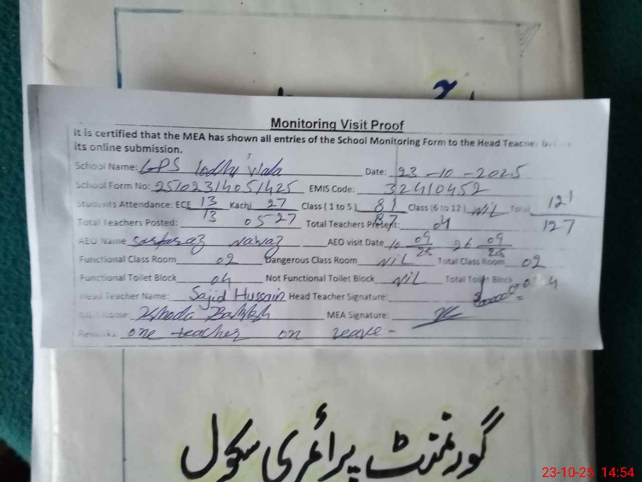 | EMIS Code: 32410452 | Name of School: GPS LODHI WALA MOOSA MEERAN | |||