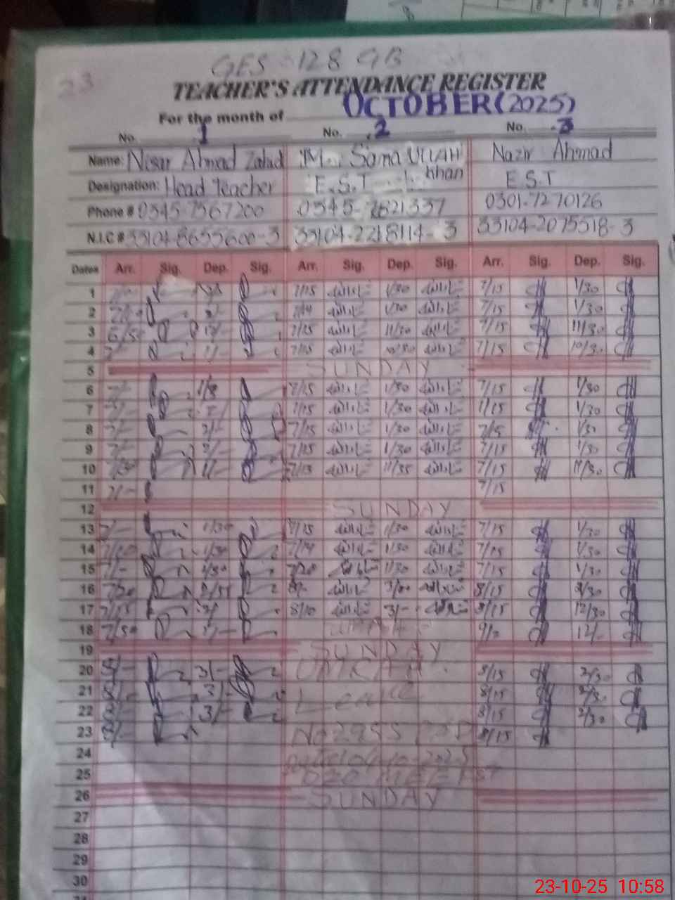 | Name: Ni**** Ah**** Designation: (School Headmaster's/Headmistress's) ES.T.(GENERAL) Phone/Cell Number: 03**** |