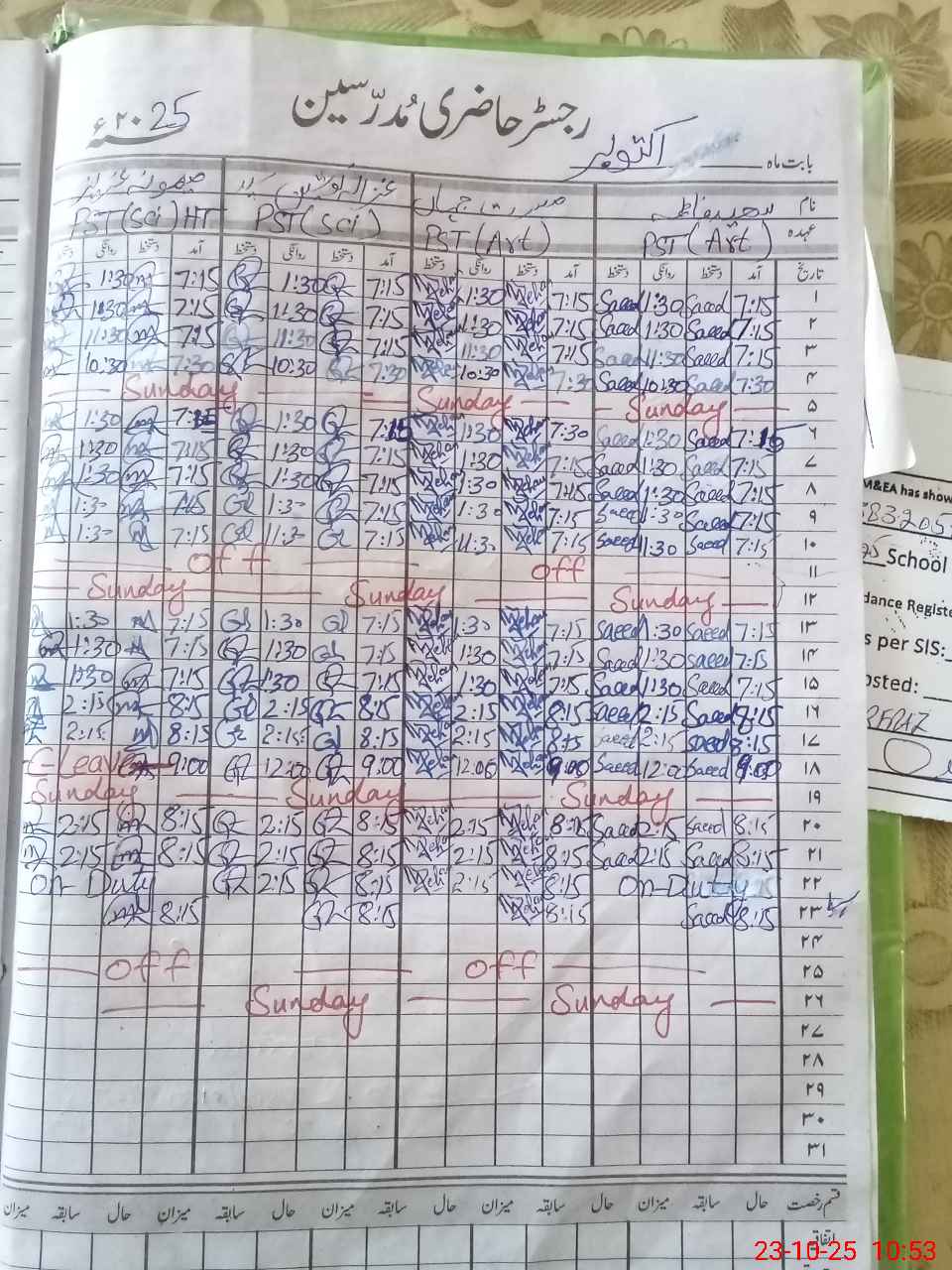 | 38**** | Sa**** Mu**** | CHOKIDAR | Regular | 0 | 0 | 0 | 0 | 0 | 0 | 0 | 0 | 0 | Other |