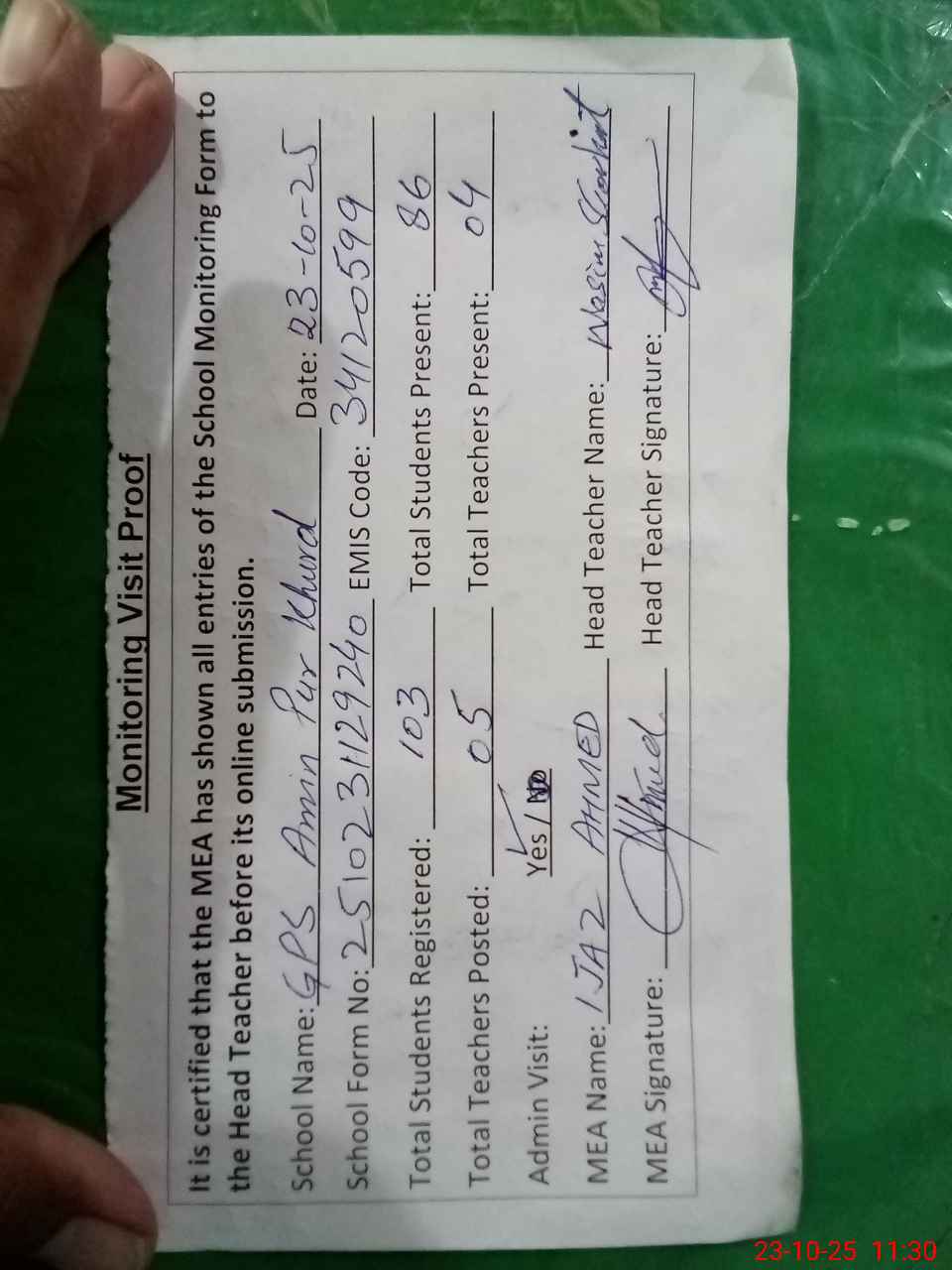| EMIS Code: 34120599 | Name of School: GPS AMIN PUR KHURD | |||