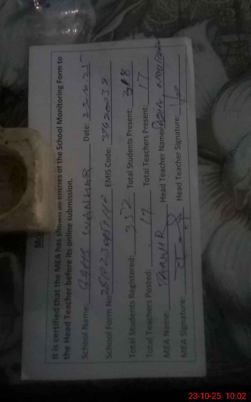 | Certified that this School was Inspected by the Undersigned MEA/DMO Today and the Information Stated Above is as Per Record. | |||||