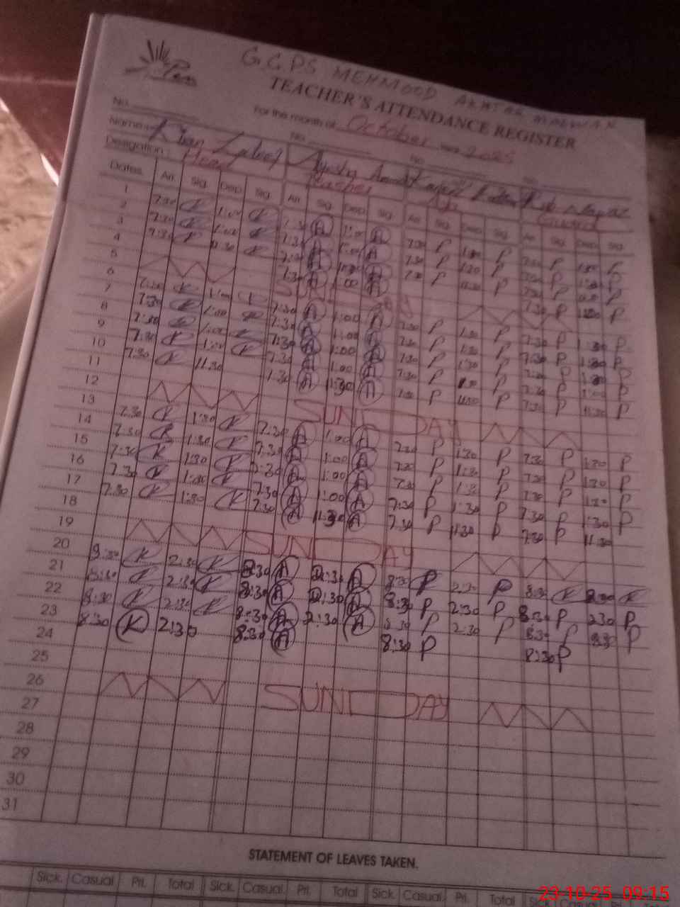 | Name: Ki**** La**** Designation: (School Headmaster's/Headmistress's) PSRP Phone/Cell Number: 03**** |