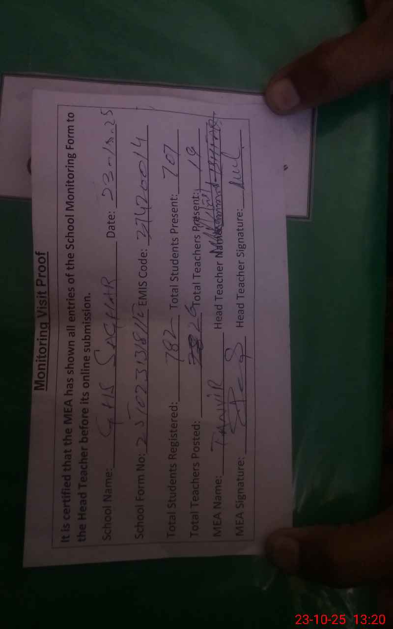 | EMIS Code: 37420014 | Name of School: GHS SAGHAR | |||