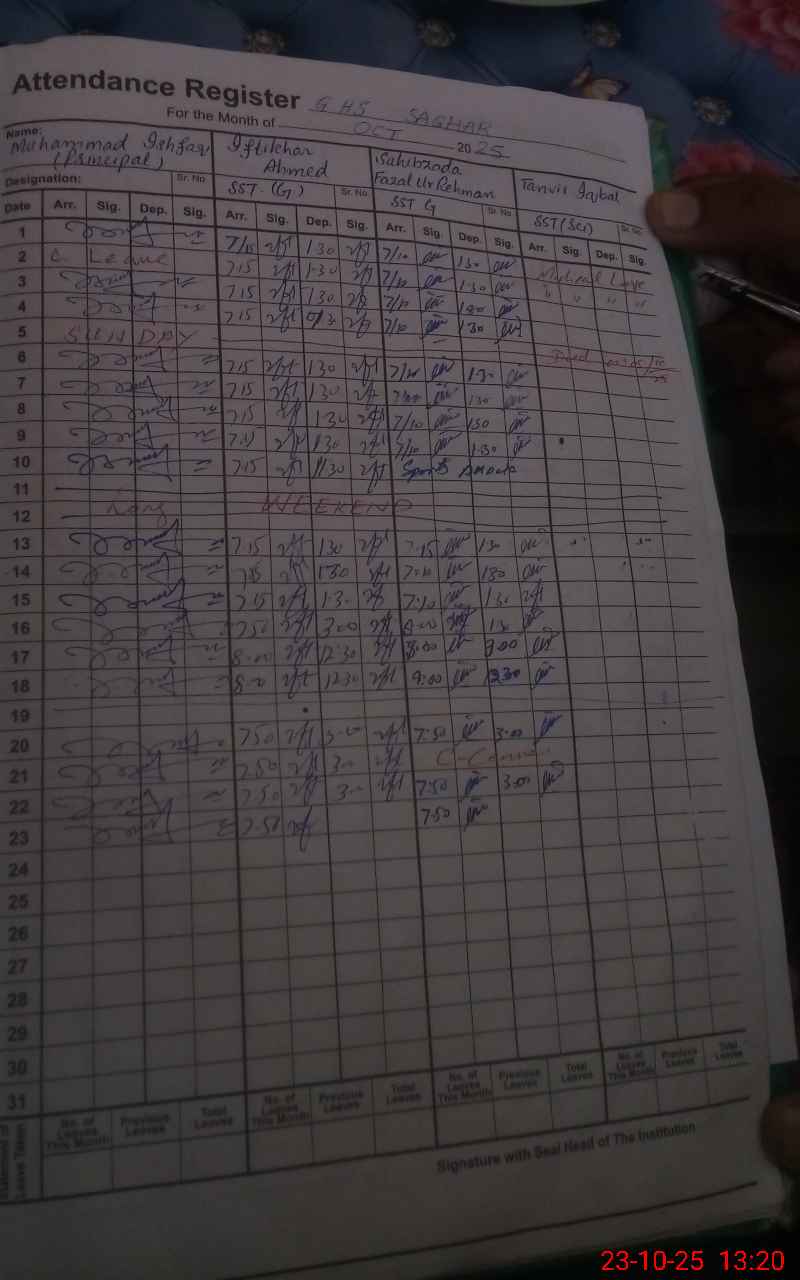 | Attendance Register | Head Teacher | MEA with School | Visit Proof |