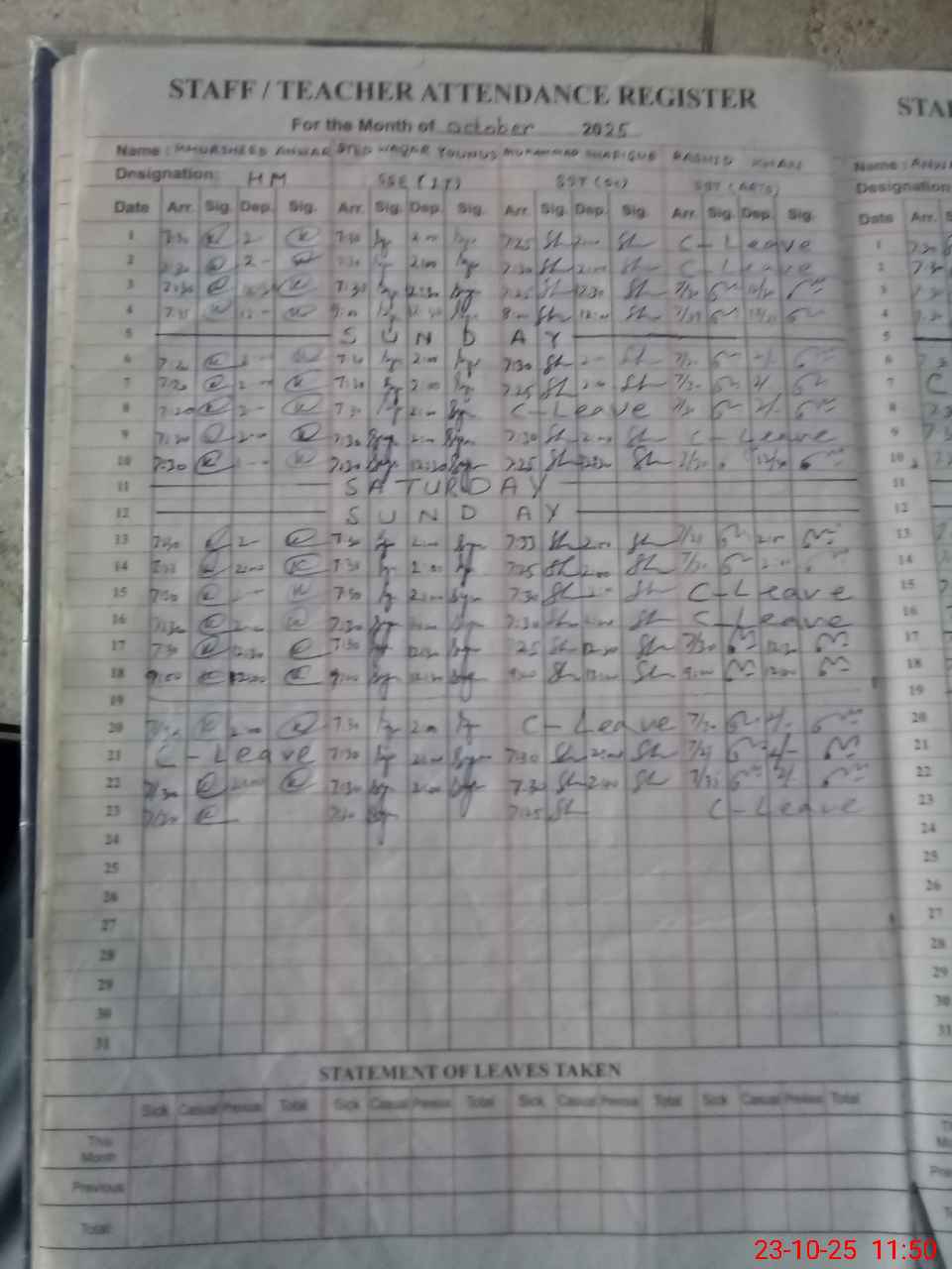 | Remarks (Use Separate Page if Required): 1 Teacher Ghulam Murtaza Siddiqui EST expired wef 31 January 2023 but his name still shown in PMIU Teachers List 2 Students attendance is about 56 percent | |||||