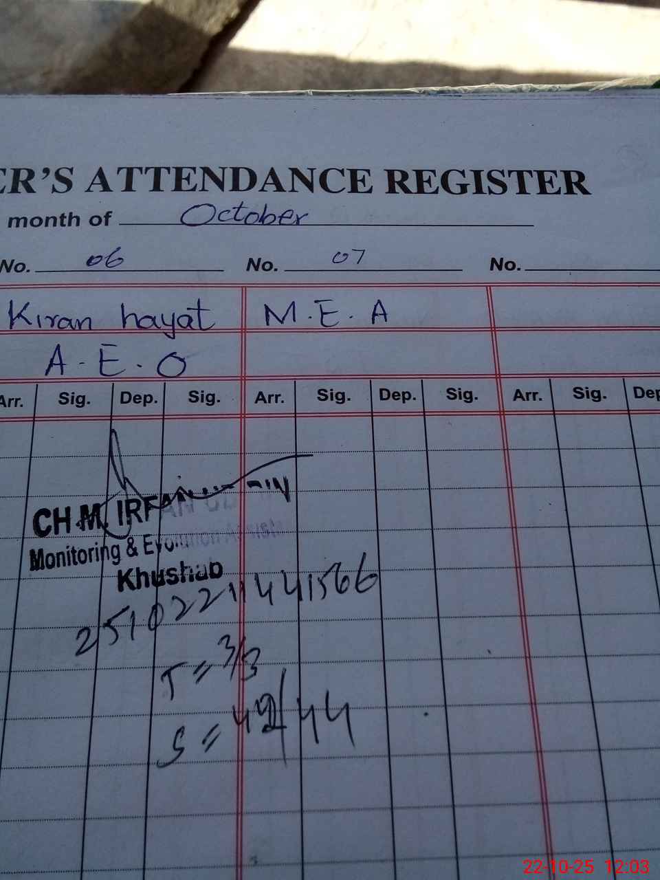 | Name: IR**** AH**** Designation: (School Headmaster's/Headmistress's) PST Phone/Cell Number: 03**** |