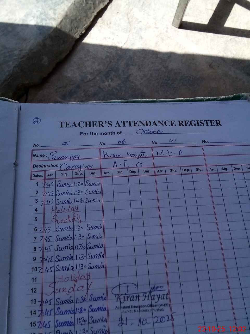 | Name of AEO: | AEO Contact No.: | MEA Phone#: 03**** | ||