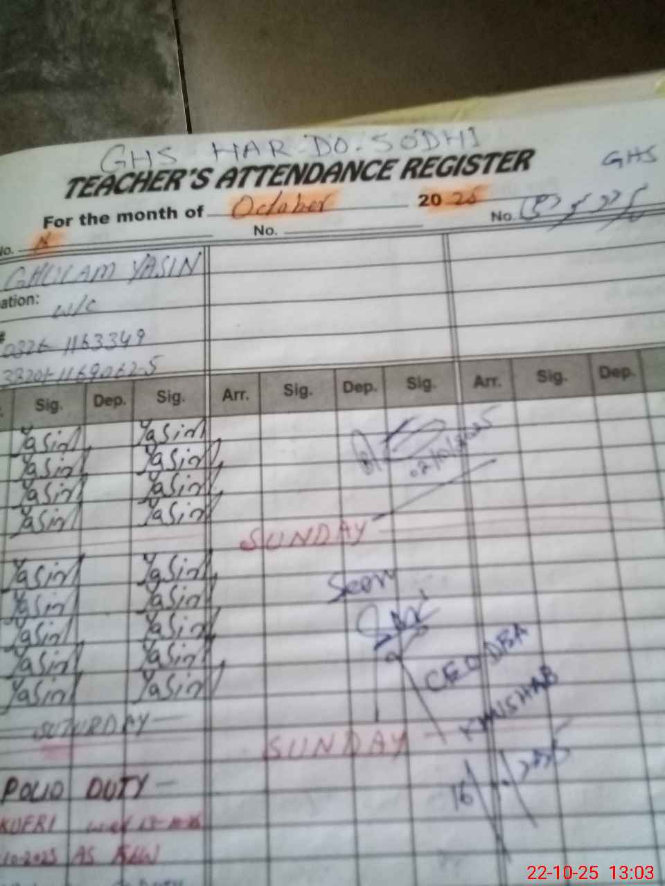 | Name: Mu**** Ba**** Designation: (School Headmaster's/Headmistress's) SST ( Sci ) Phone/Cell Number: 03**** |