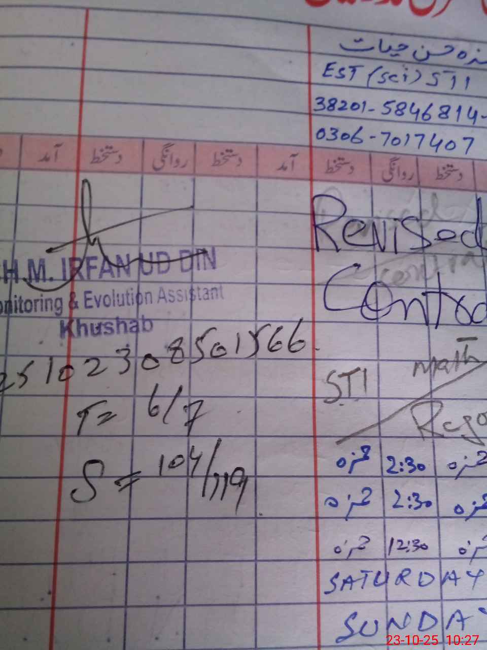 | Name: Mu**** Ta**** Ri**** Designation: (School Headmaster's/Headmistress's) SSE Phone/Cell Number: 03**** |