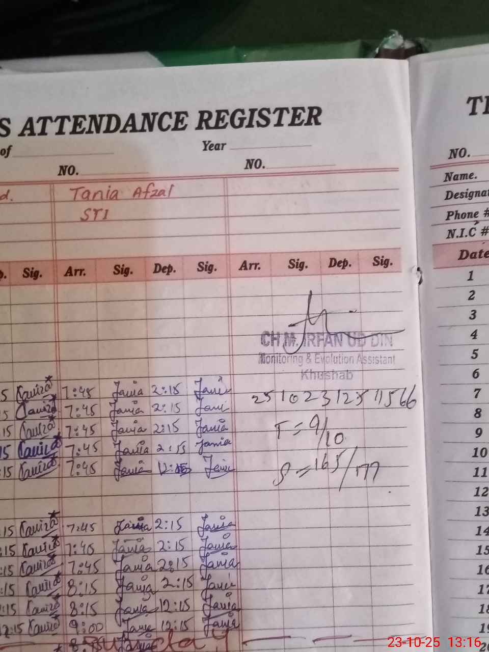 | CNIC | Full Name | Designation | R/C | Absence during last cal. month |