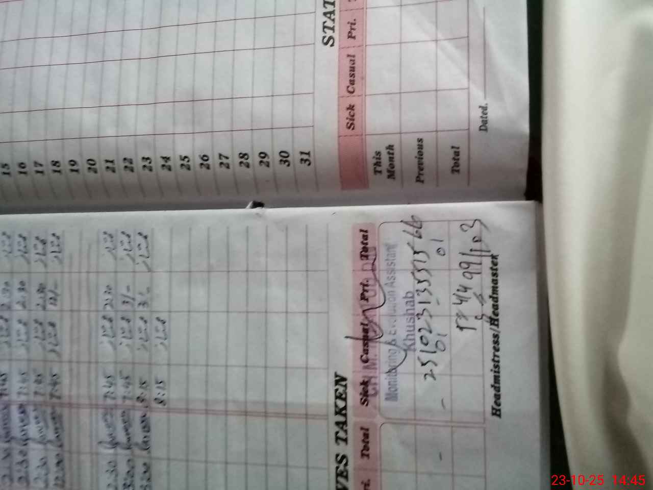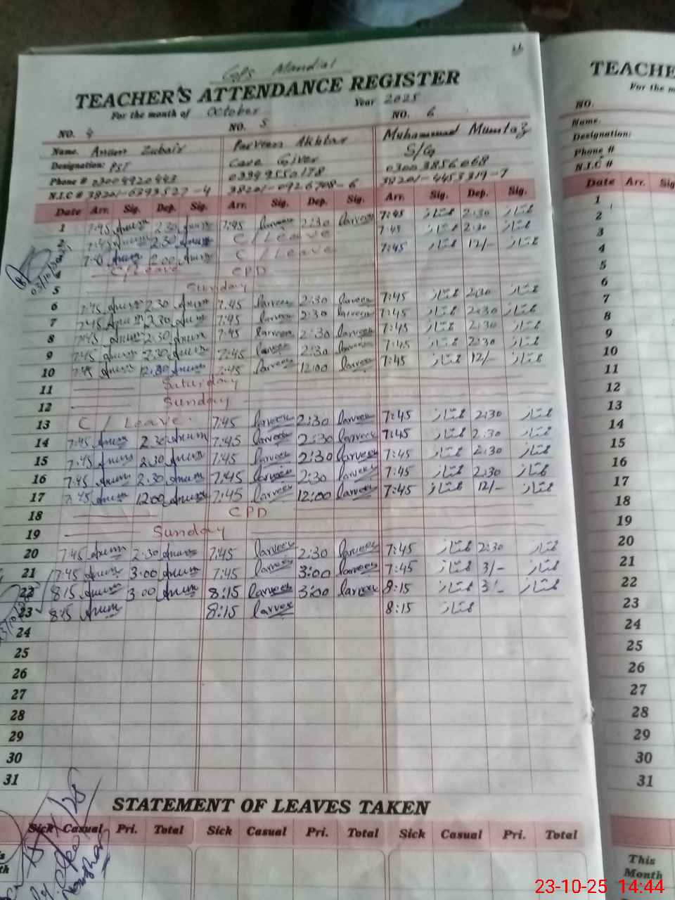 | Name: MU**** IS**** Designation: (School Headmaster's/Headmistress's) PST Phone/Cell Number: 03**** |