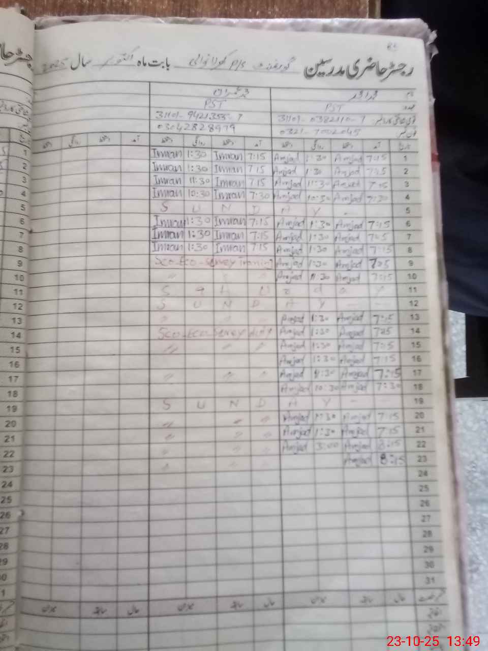 | 31**** | Mu**** Sa**** | ESE | Contract | 0 | 0 | 0 | 0 | 0 | 0 | 0 | 0 | 0 | Casual |