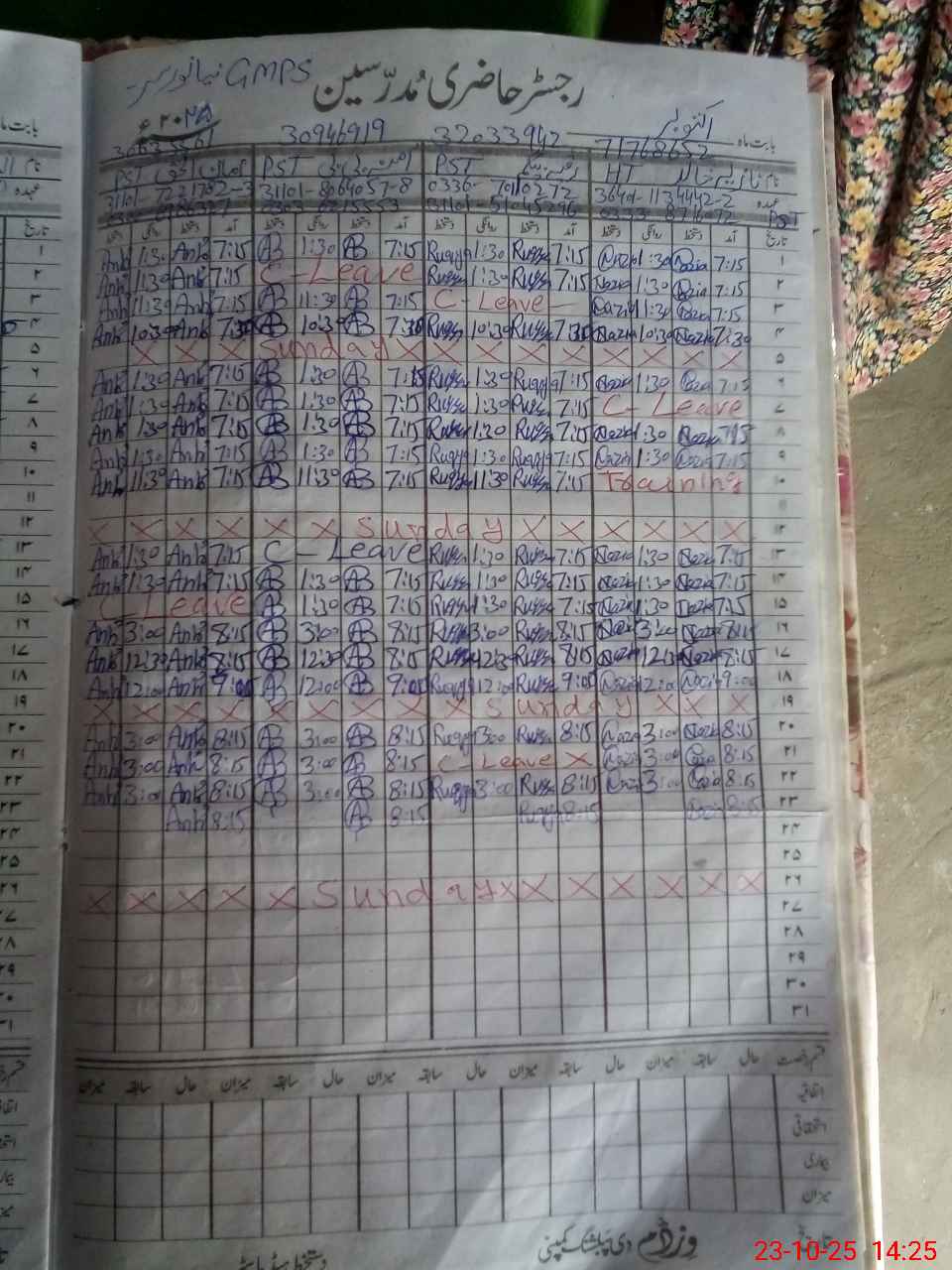 | Name: NA**** KH**** Designation: (School Headmaster's/Headmistress's) PST Phone/Cell Number: 03**** |