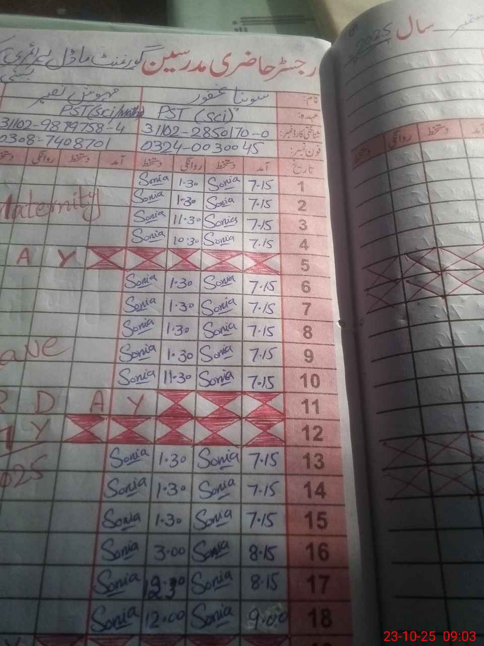 | Name: SO**** GH**** Designation: (School Headmaster's/Headmistress's) Est Sci Phone/Cell Number: 03**** |