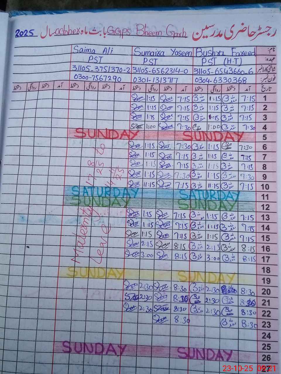 | Name: Bu**** Fa**** Designation: (School Headmaster's/Headmistress's) PST Phone/Cell Number: 03**** |