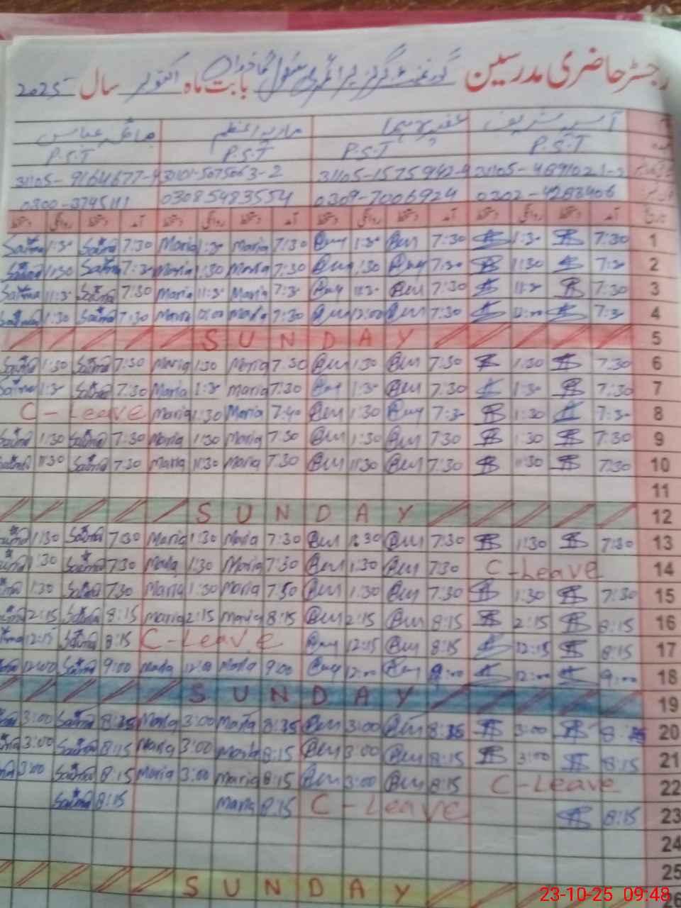 | Name: AS**** SH**** Designation: (School Headmaster's/Headmistress's) PST Phone/Cell Number: 03**** |