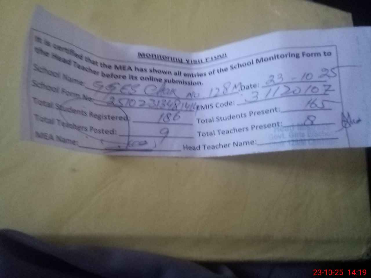 | EMIS Code: 31120107 | Name of School: GGES CHAK NO 128/M | |||