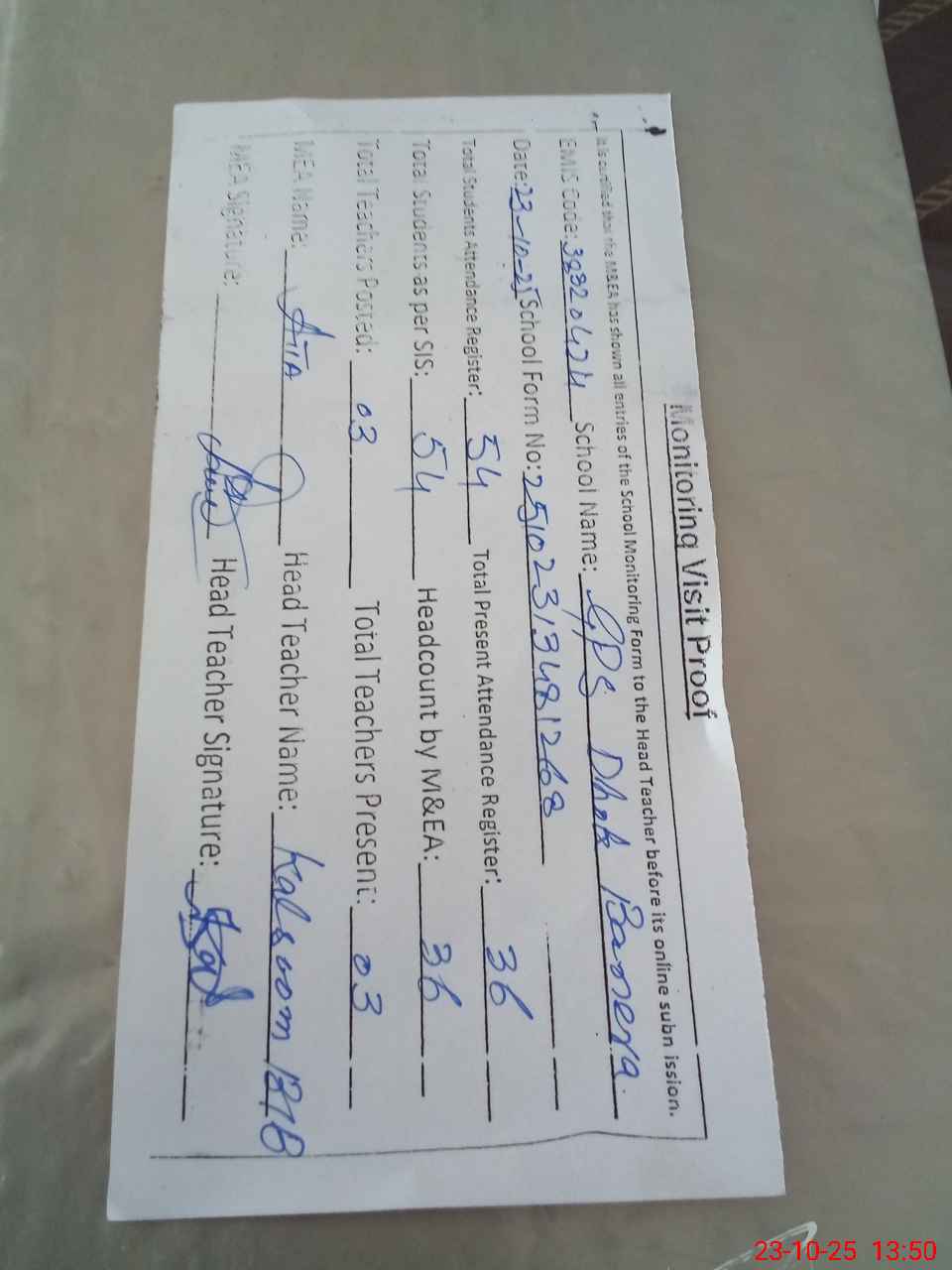 | EMIS Code: 38320424 | Name of School: GPS DHOK BANERA | |||