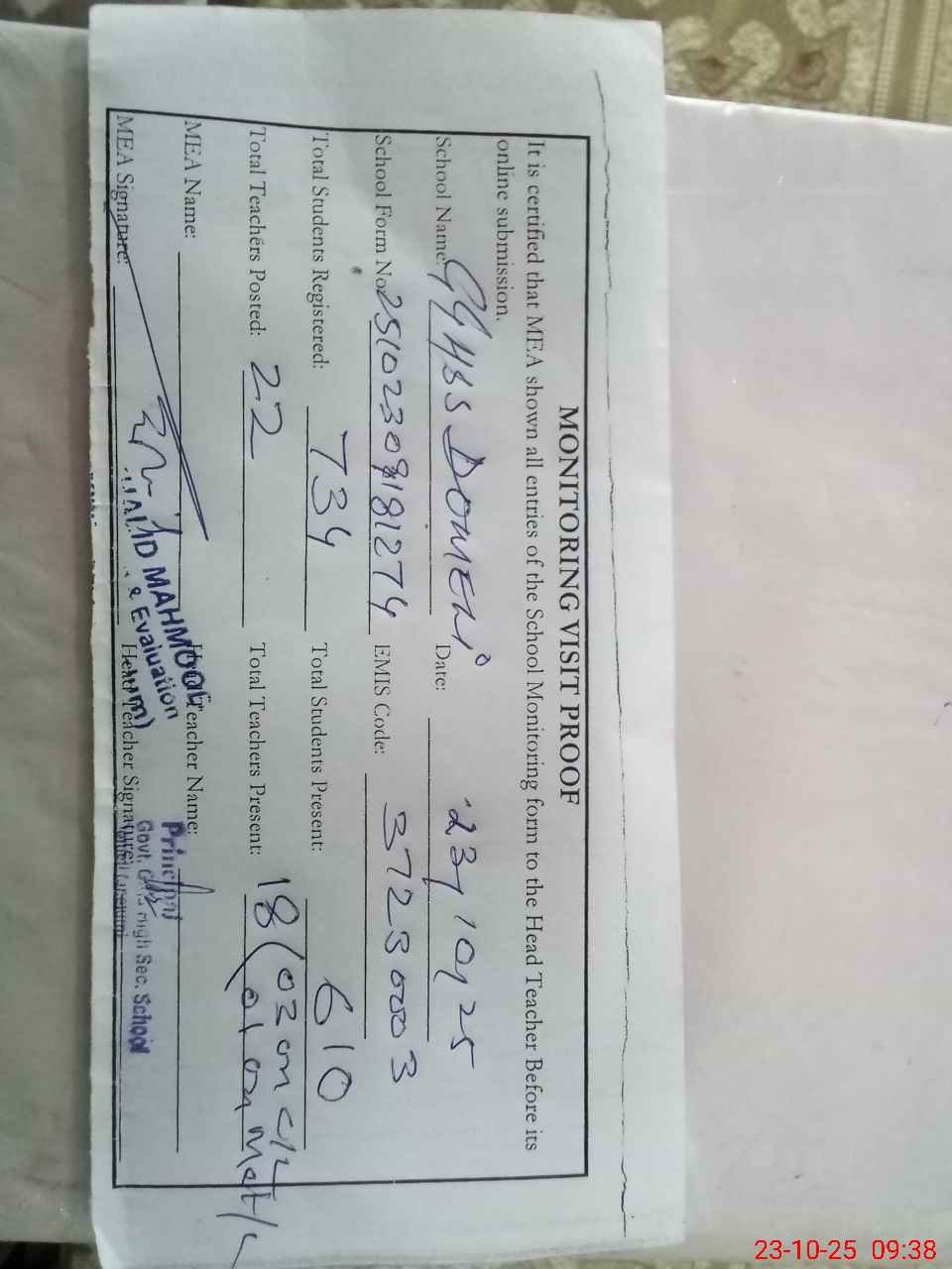 | Certified that this School was Inspected by the Undersigned MEA/DMO Today and the Information Stated Above is as Per Record. | |||||