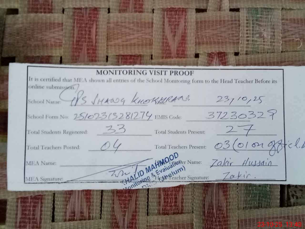 | EMIS Code: 37230329 | Name of School: GPS JHANG KHUKHRAN NO.2 | |||