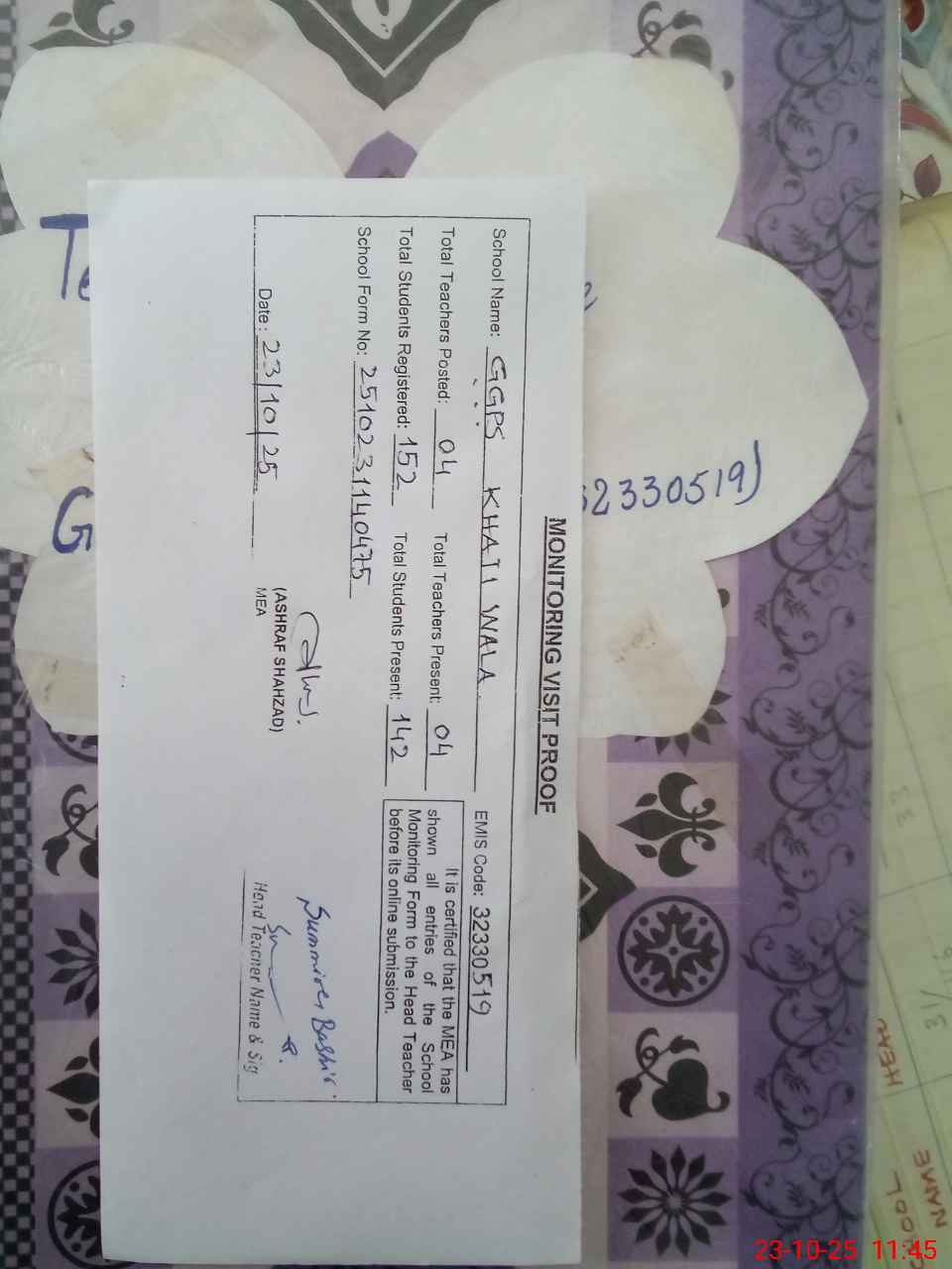 | EMIS Code: 32330519 | Name of School: GGPS KHAJI WALA | |||