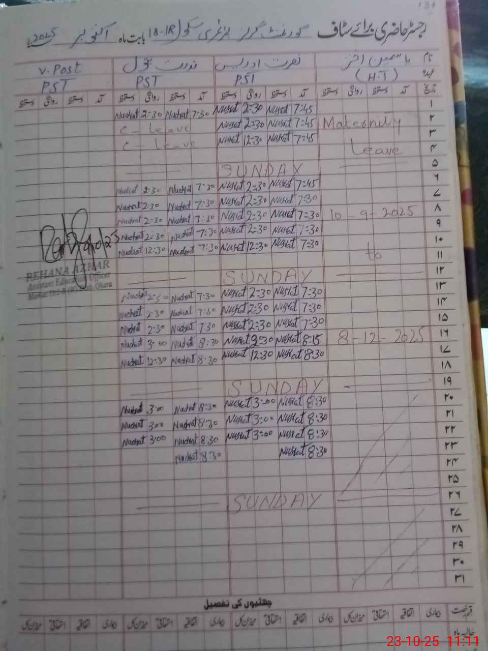 | 35**** | Ya**** Ak**** | PST | Regular | 23 | 0 | 0 | 21 | 0 | 0 | 0 | 0 | 2 | Maternity |