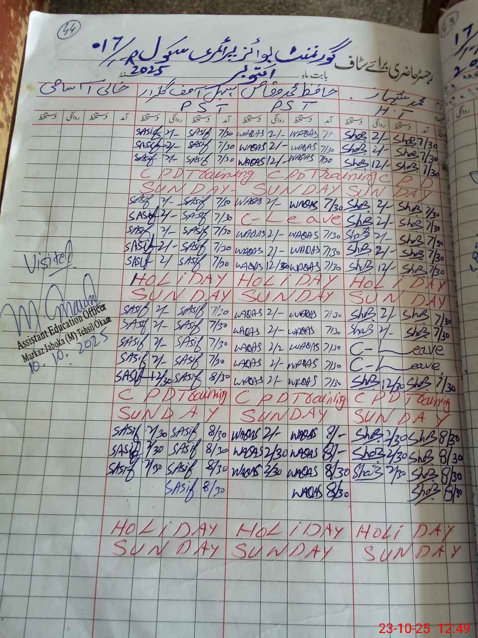 | Name: Mu**** Sh**** Designation: (School Headmaster's/Headmistress's) PST Phone/Cell Number: 03**** |