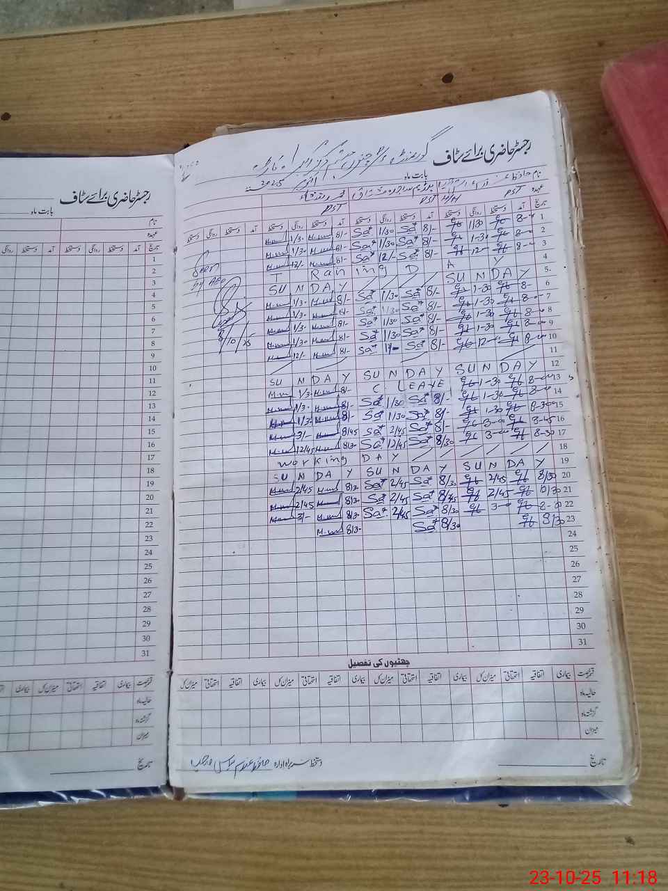 | CNIC | Full Name | Designation | R/C | Absence During Last Calender Month |