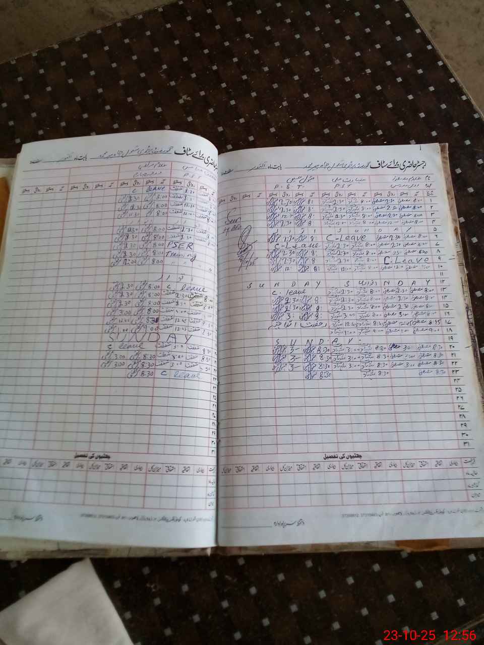 | CNIC | Full Name | Designation | R/C | Absence During Last Calender Month |
