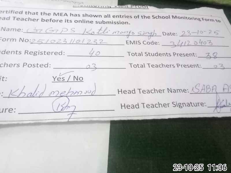 | EMIS Code: 34120403 | Name of School: GGPS KOTLI MANGO SINGH | |||