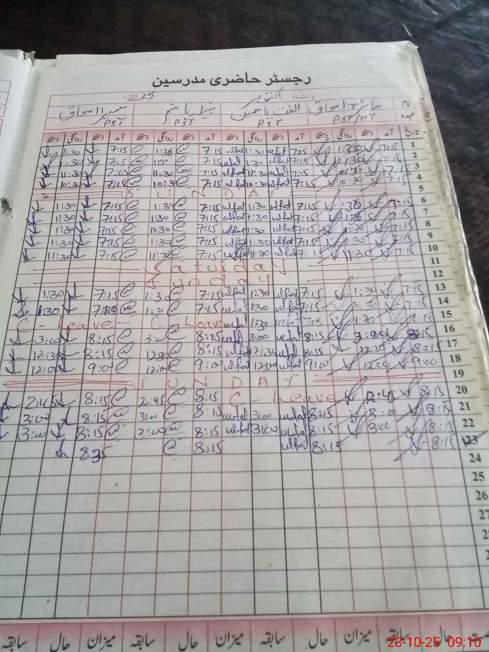 | CNIC | Full Name | Designation | R/C | Absence During Last Calender Month |