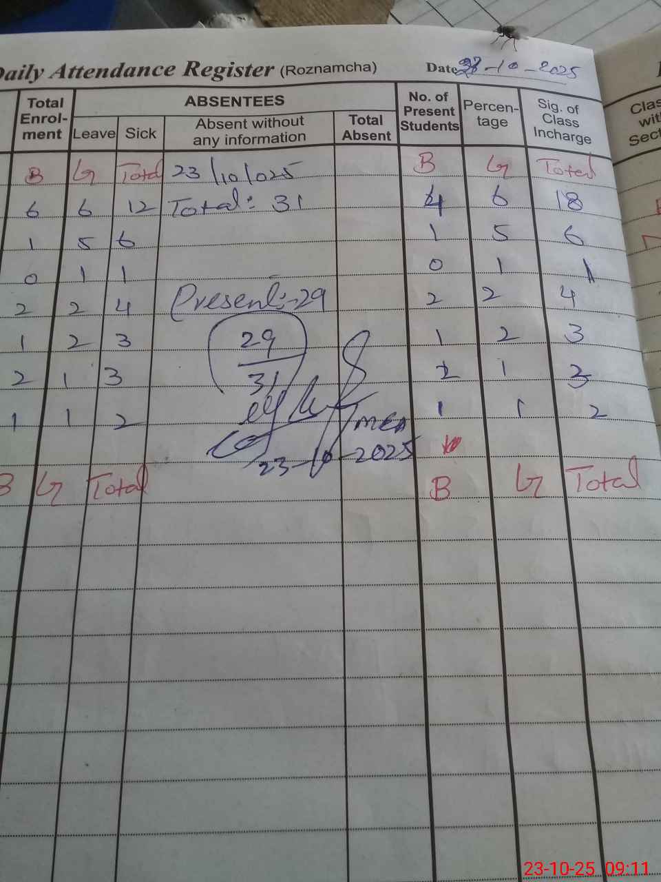 | Total Students Present | 10 | 0 | 6 | 1 | 4 | 3 | 3 | 2 | 29 | |||||||