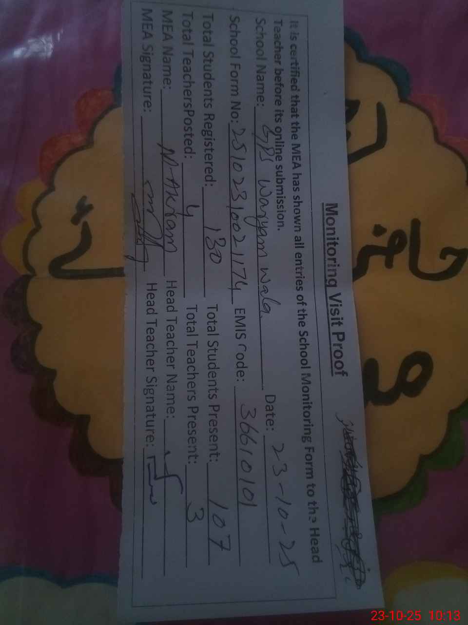 | EMIS Code: 36610101 | Name of School: GPS WARYAM WALA BASTI WARYAM WALA MOZA RAJA PUR | |||