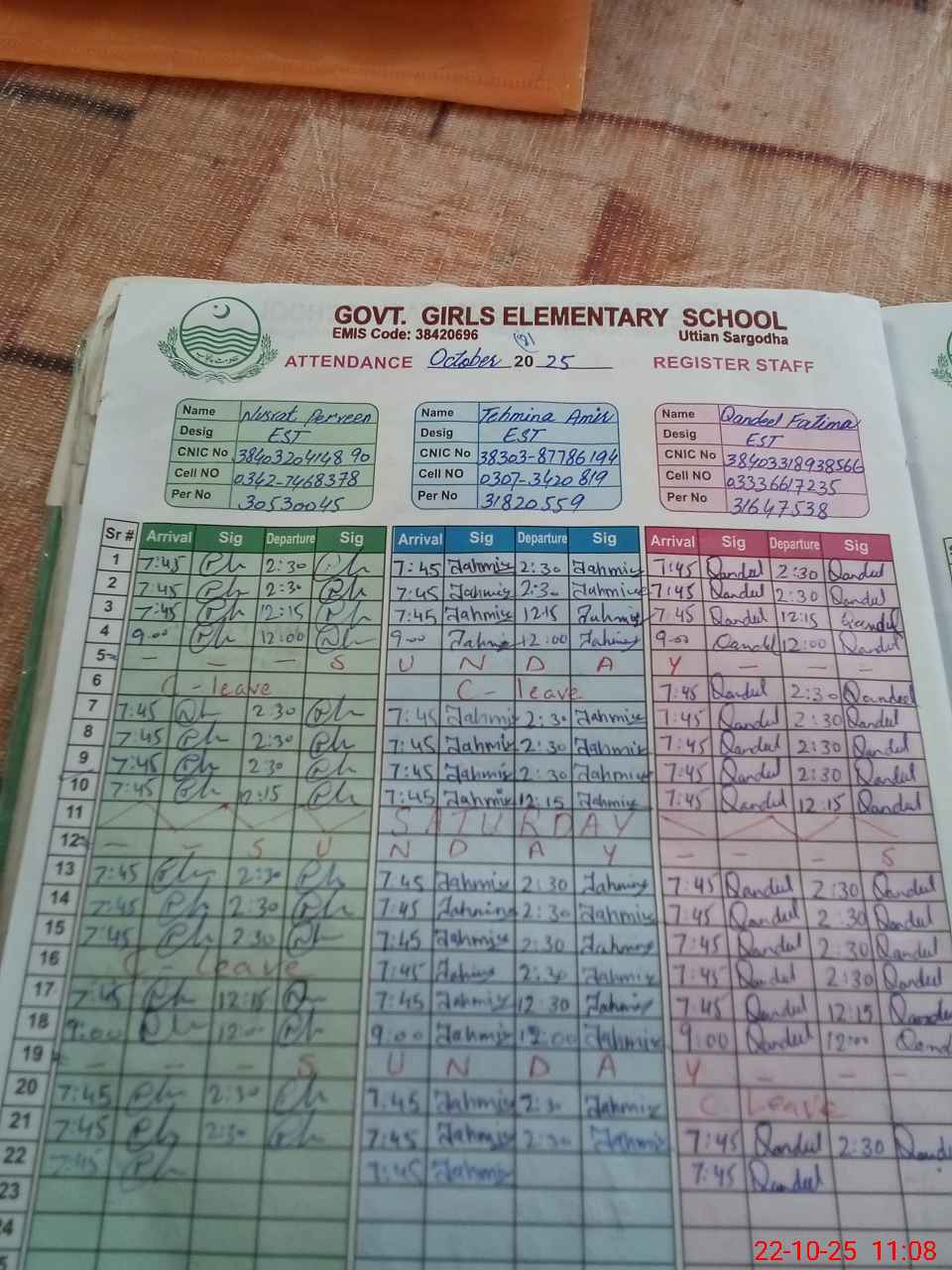 | Name: NU**** PA**** Designation: (School Headmaster's/Headmistress's) EST (GENERAL) Phone/Cell Number: 03**** |
