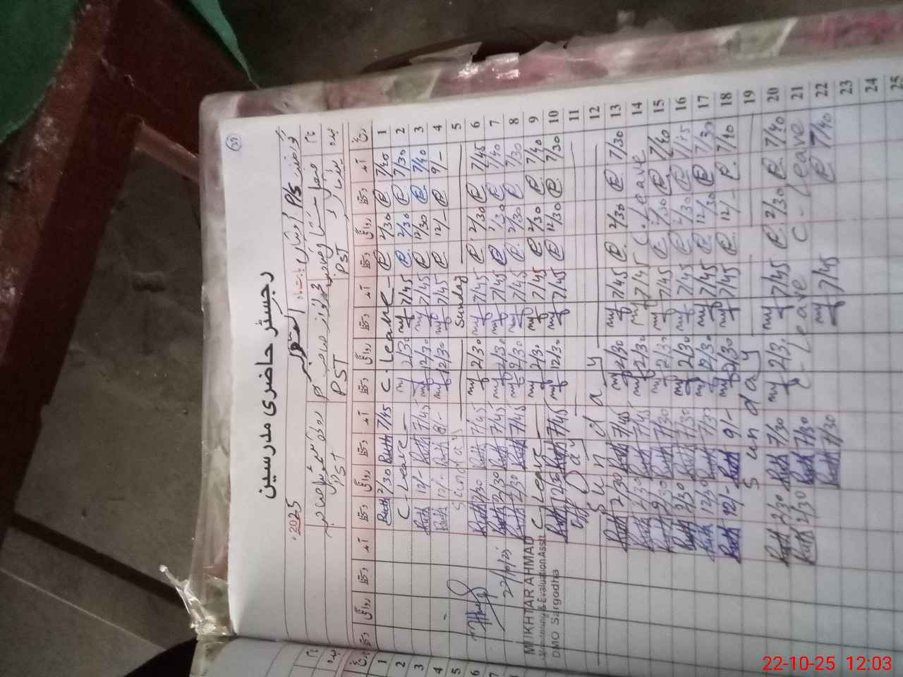 | Name: MU**** NA**** Designation: (School Headmaster's/Headmistress's) PST Phone/Cell Number: 03**** |