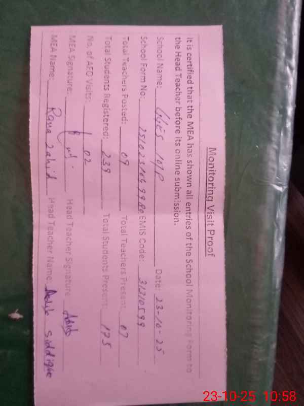 | Certified that this School was Inspected by the Undersigned MEA/DMO Today and the Information Stated Above is as Per Record. | |||||
