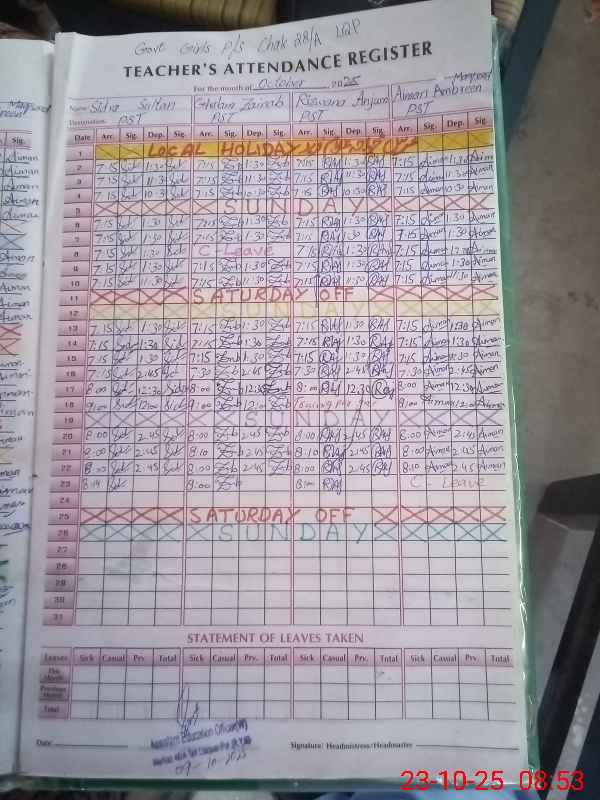| Name: SI**** SU**** Designation: (School Headmaster's/Headmistress's) PST/PTC/JV Phone/Cell Number: 03**** |