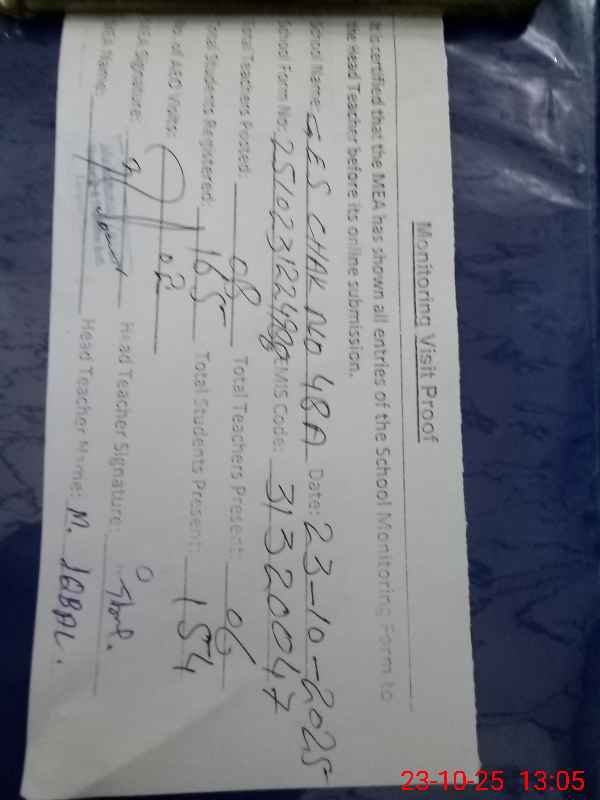 | EMIS Code: 31320047 | Name of School: GES CHAK NO. 48/A | |||