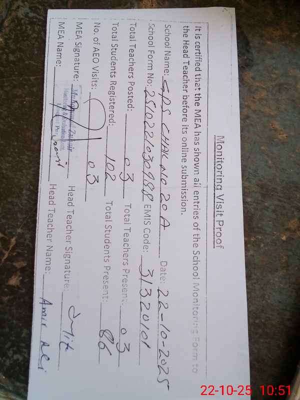 | EMIS Code: 31320101 | Name of School: GPS CHAK 20/A | |||