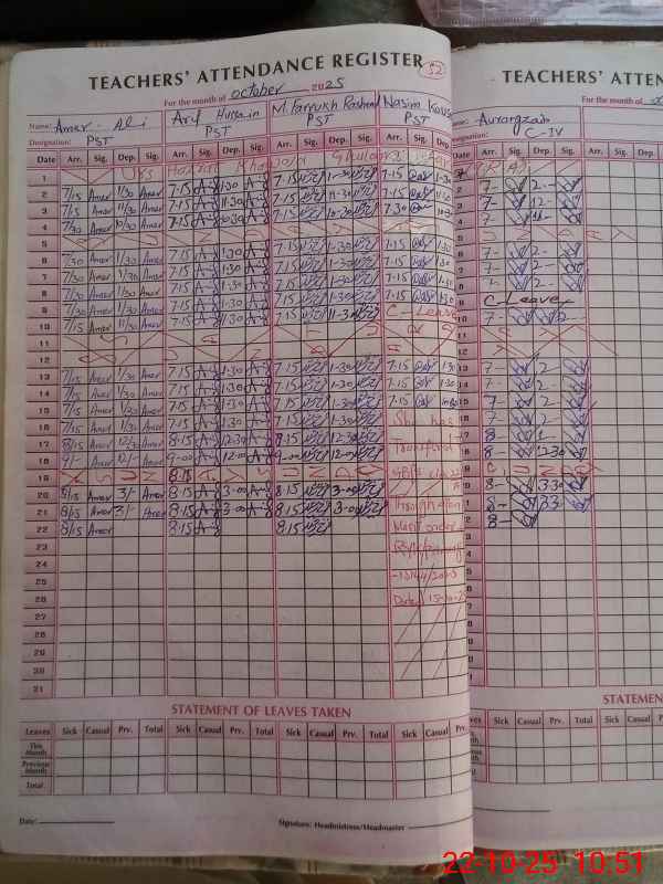 | Name: AM**** AL**** Designation: (School Headmaster's/Headmistress's) PST Phone/Cell Number: 03**** |