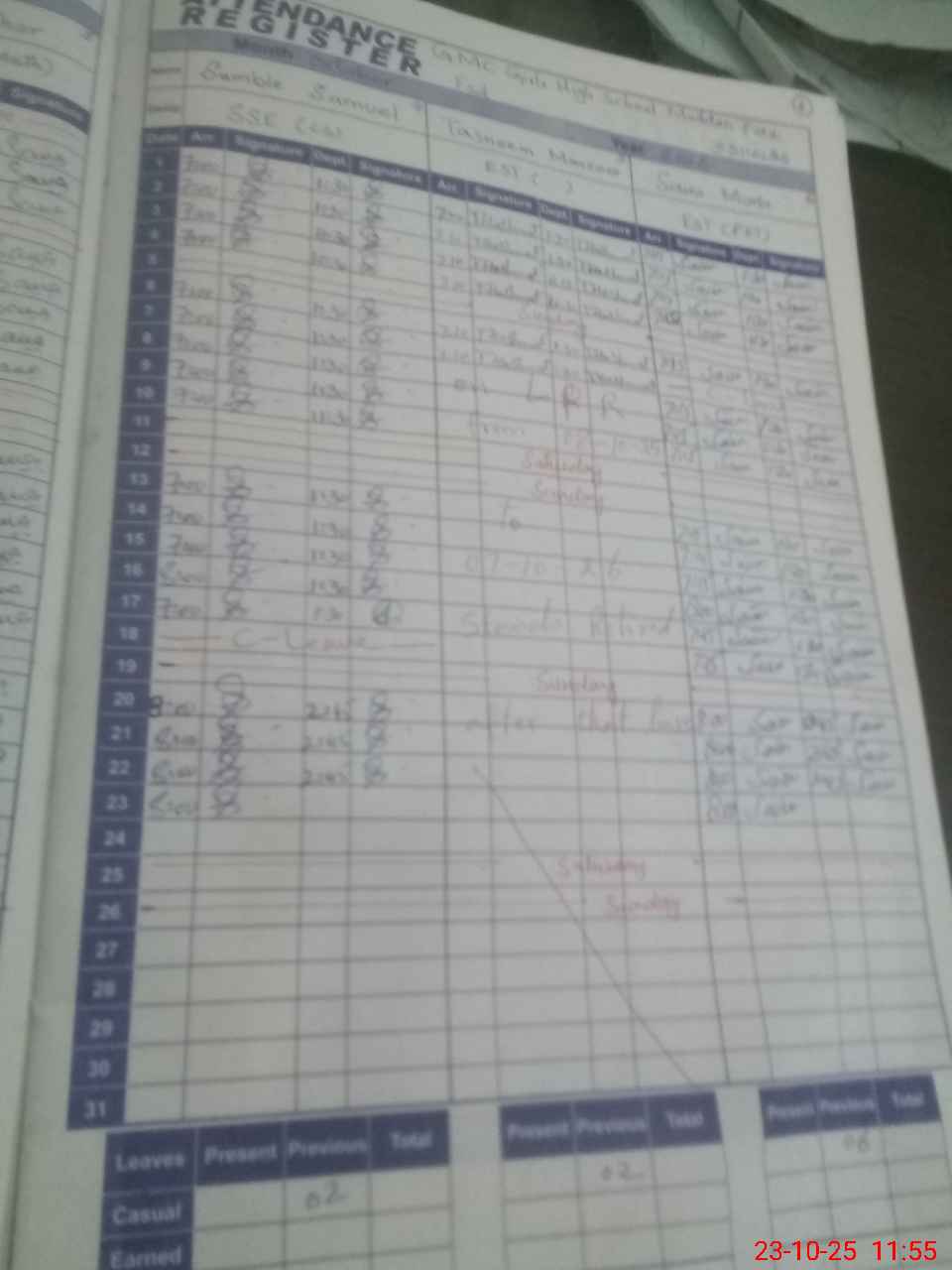 | Total Students Present | 0 | 0 | 65 | 55 | 58 | 37 | 65 | 36 | 83 | 71 | 88 | 87 | 85 | 730 | ||
