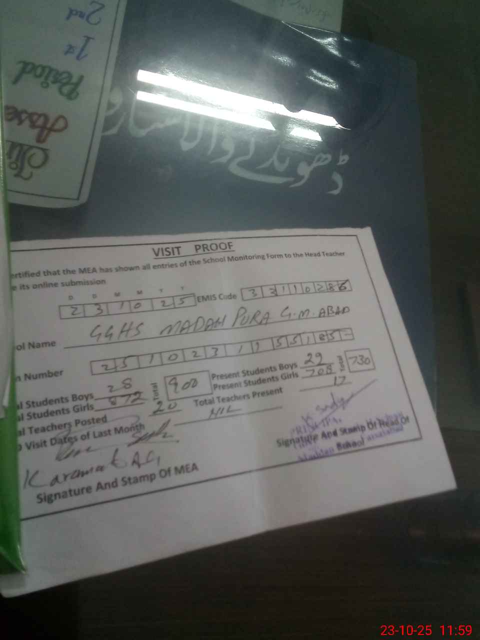 | Attendance Register | Head Teacher | MEA with School | Visit Proof |