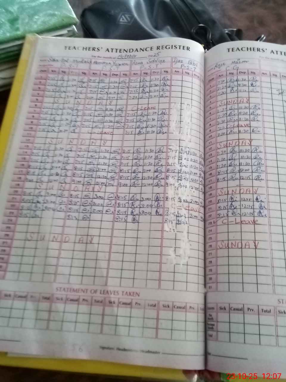 | CNIC | Full Name | Designation | R/C | Absence During Last Calender Month |