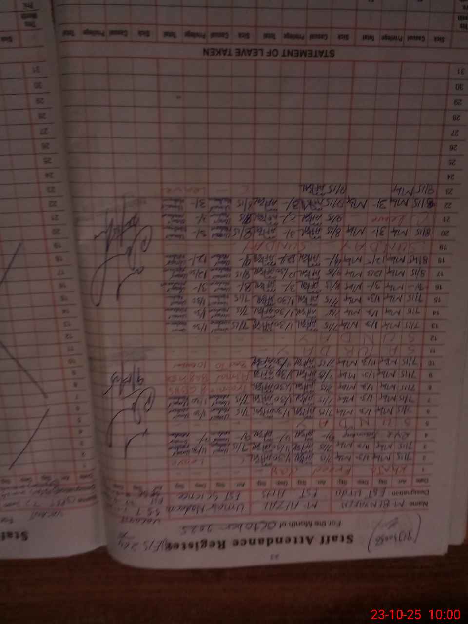 | CNIC | Full Name | Designation | R/C | Absence During Last Calender Month |