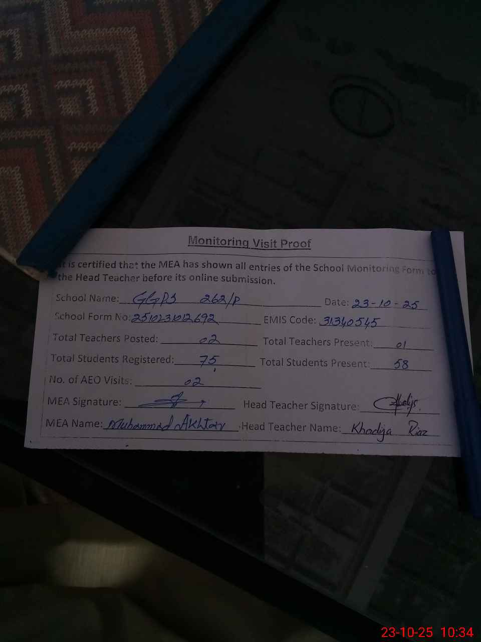 | EMIS Code: 31340545 | Name of School: GGPS CHAK 262/P | |||
