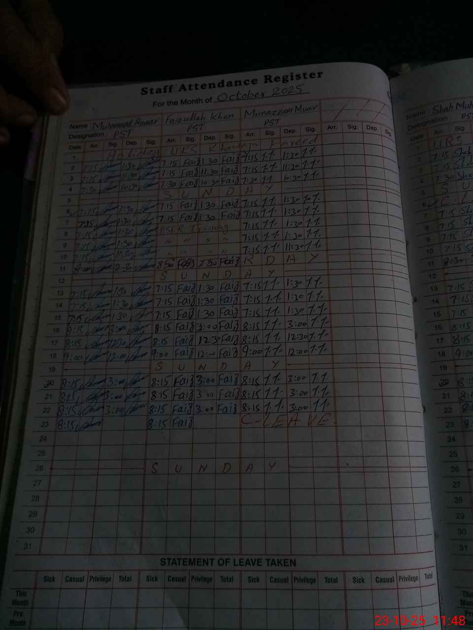 | CNIC | Full Name | Designation | R/C | Absence During Last Calender Month |