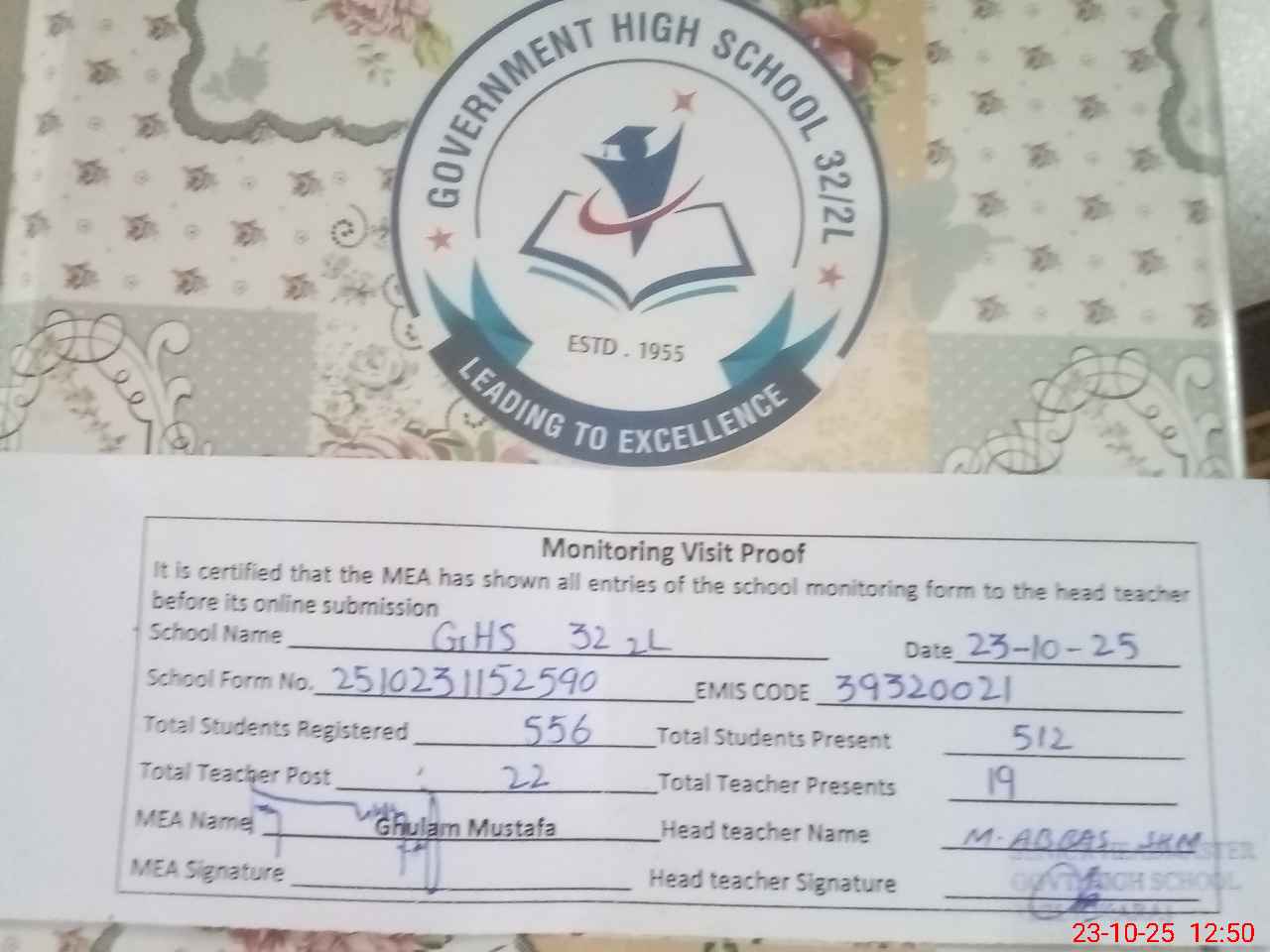 | EMIS Code: 39320021 | Name of School: GHS CHAK NO.32/2-L | |||