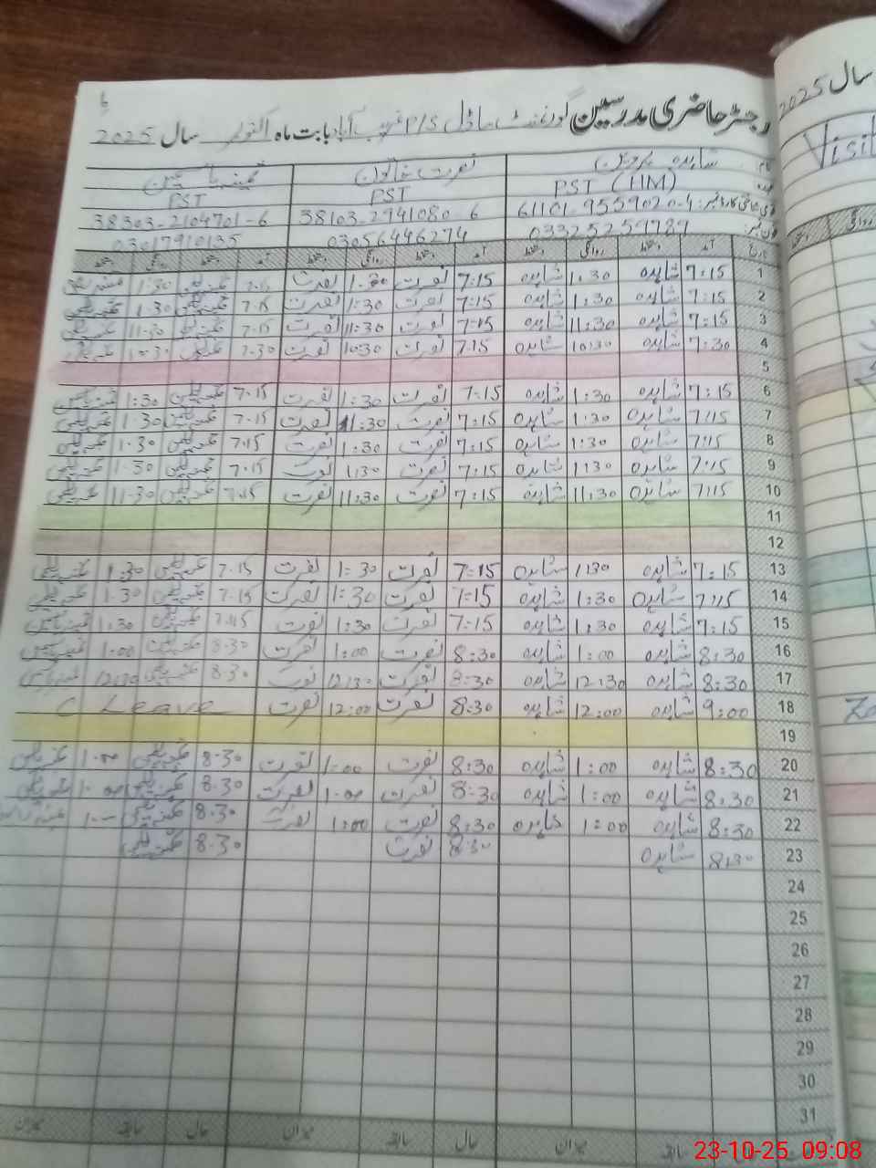 | Name: Sh**** Pe**** Designation: (School Headmaster's/Headmistress's) PST Phone/Cell Number: 03**** |